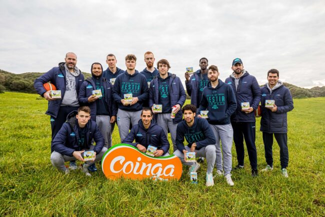La plantilla del Hestia Básquet Menorca ha cambiado hoy la cancha por el campo de Menorca durante una visita al lloc de Capifort en Favaritx, una de las 107 granjas asociadas a Coinga.