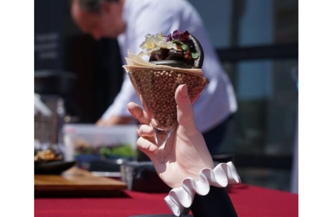 La sala multifuncional des Mercadal ha acogido la presentación de la X edición de Tapes per Menorca donde el chef Juan Carlos García ha elaborado un postre para la ocasión llamado “Coinga Cake” que han podido degustar todos los asistentes.