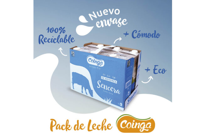 Coinga segueix fent feina en la implantació de mesures més sostenibles. L’últim producte en comercialitzar-se amb un nou envàs és el pack de 6 briks de llet de Menorca.